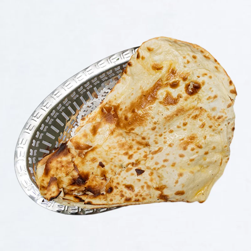 Triangled, folded, and butter filled tandoori bread. (CG, NF, CD)