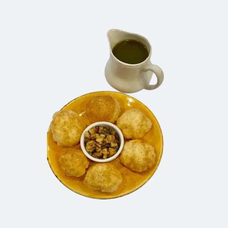 Crispy hollow puris filled with spiced potatoes, chickpeas, and tangy tamarind-mint water. A burst of flavour in every bite. (CG, DF, NF)